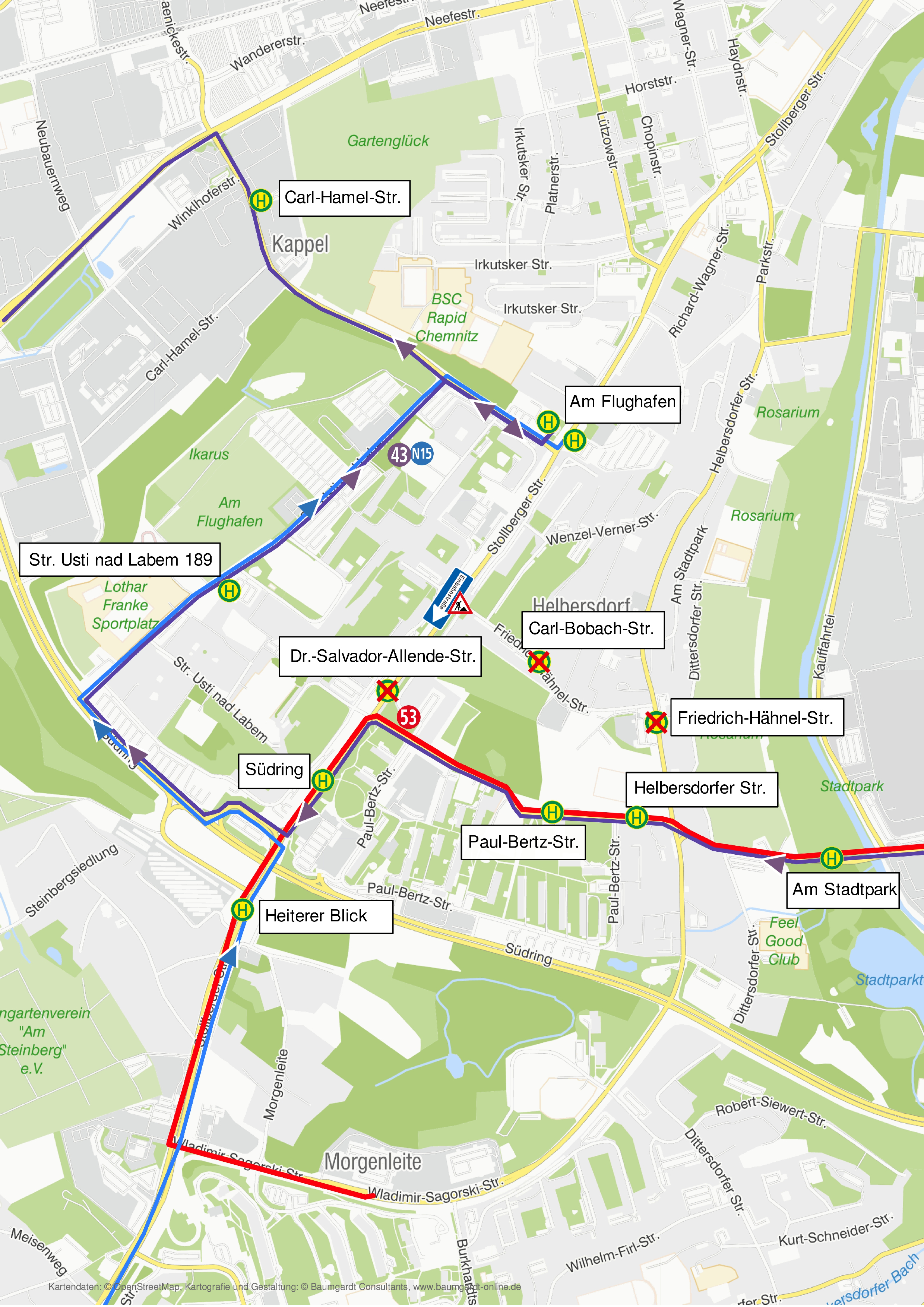 … Scheffelstraße - Stollberger Staße - Auffahrt Südring - Straße Usti nad Labem - Wendeanlage Am Flughafen - Straße Usti nad Labem - Carl-Hamel-Straße - weiter original