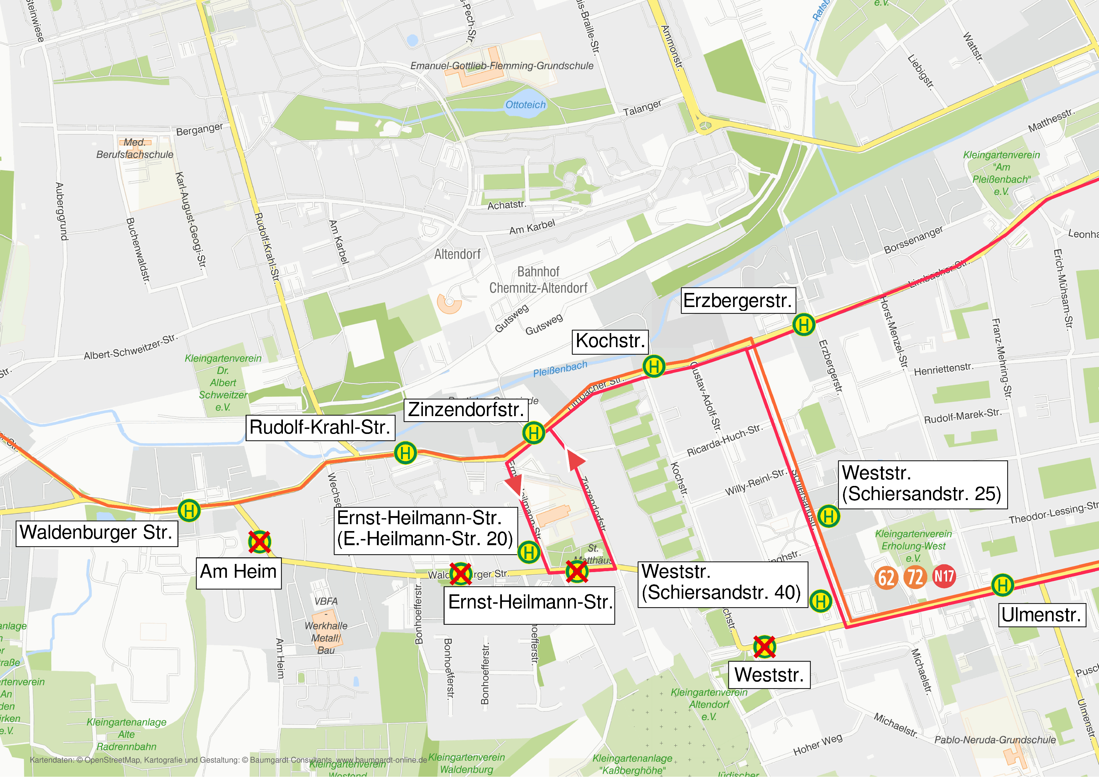 - Entfall der Hst. Rudolf-Krahl-Str. und Am Heim